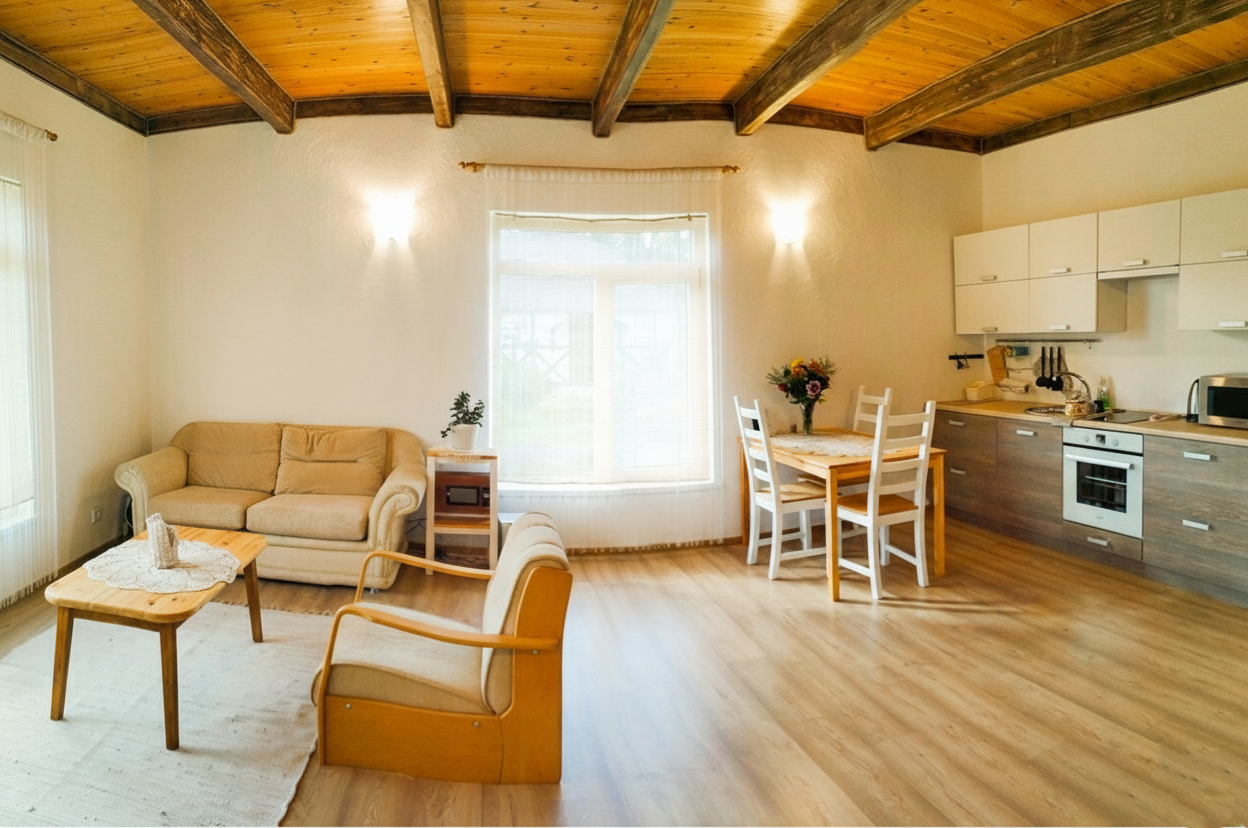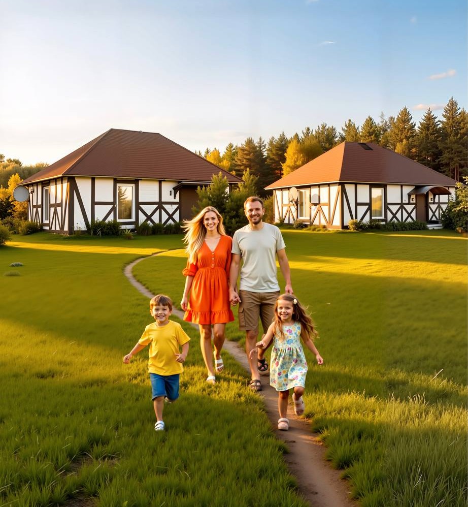 Современные гостевые домики до 6 спальных мест каждый. Оборудованная кухня: холодильник, плита, чайник микроволновая печь и даже камин создадут для вас уют и комфорт как дома, только лучше. Ванная комната с оборудованной душевой и туалетными принадлежностями в кажддом домике